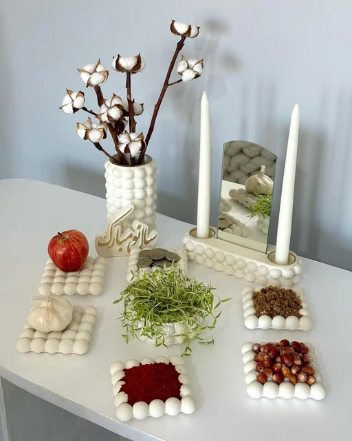 لطفا توضیحات رو کامل مطالعه کنید : ست شامل سه آیتم هست جاشمعی و پایه آینه متصل ، ظرف هفتسین و ظرف سبزه و از اونجایی که خیلی از عزیزان میمیپرسند لازمه که توضیح بدم از ظرف هفتسین فقط یک عدد روی پک وجود داره (به طور کلی از همه آیتم ها فقط یک عدد درون پک وجود داره )